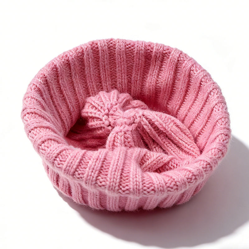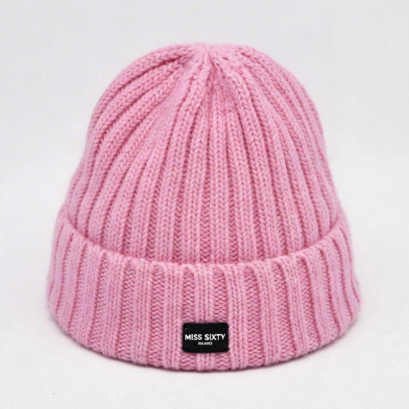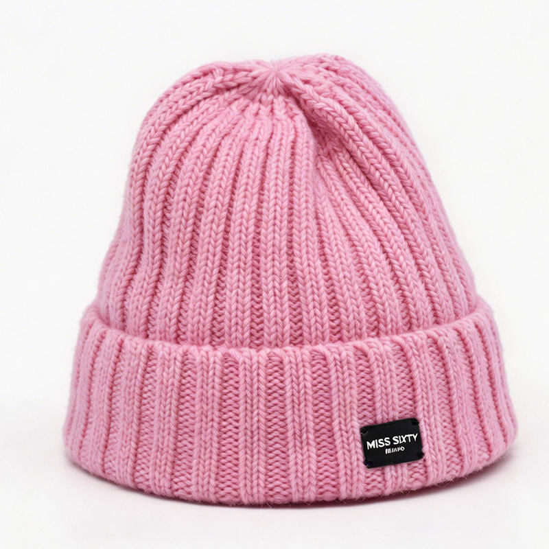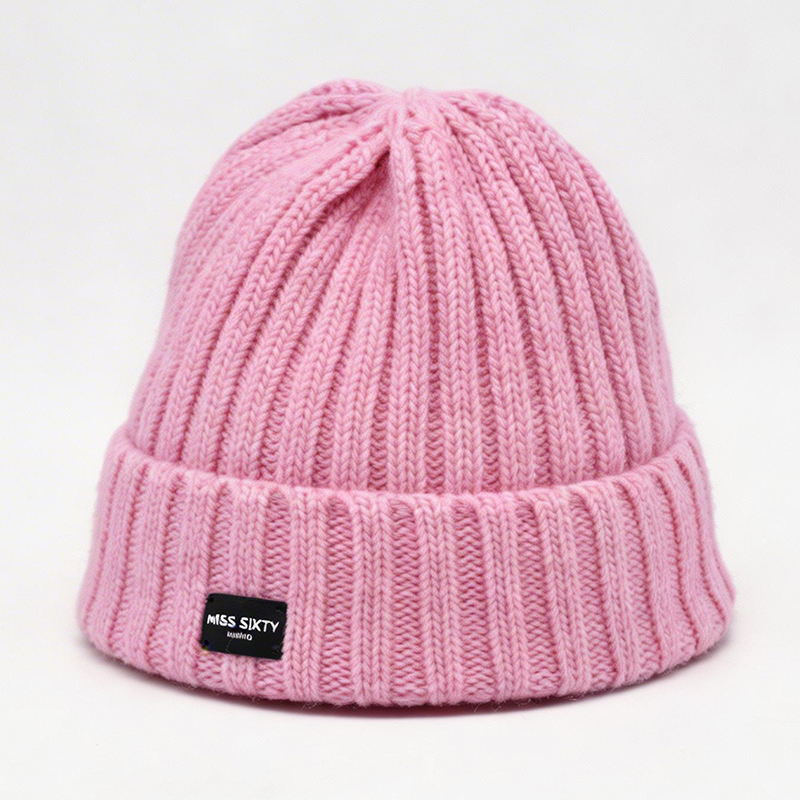 Pink Ribbed Knit Beanie-Warm Soft Common Travel Autumn Winter Hat for Unisex Custom Logo Puff Image Character Wholesale