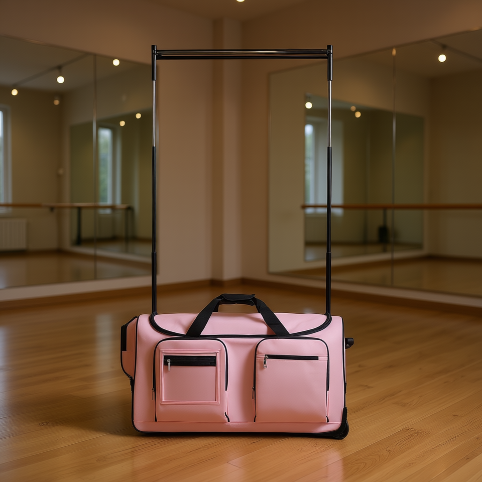 Pink Rolling Dance Bag 29 Inch with Garment Rack for Carrying Clothes and Accessories