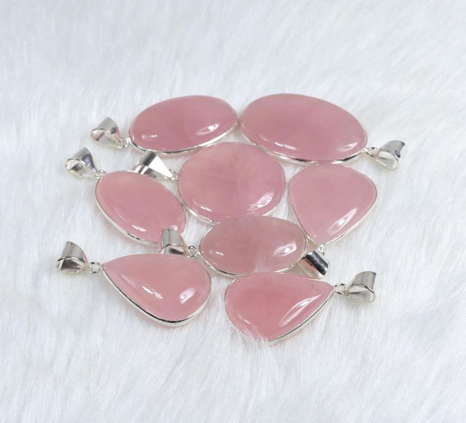 Natural Rose quartz silver plated pendants