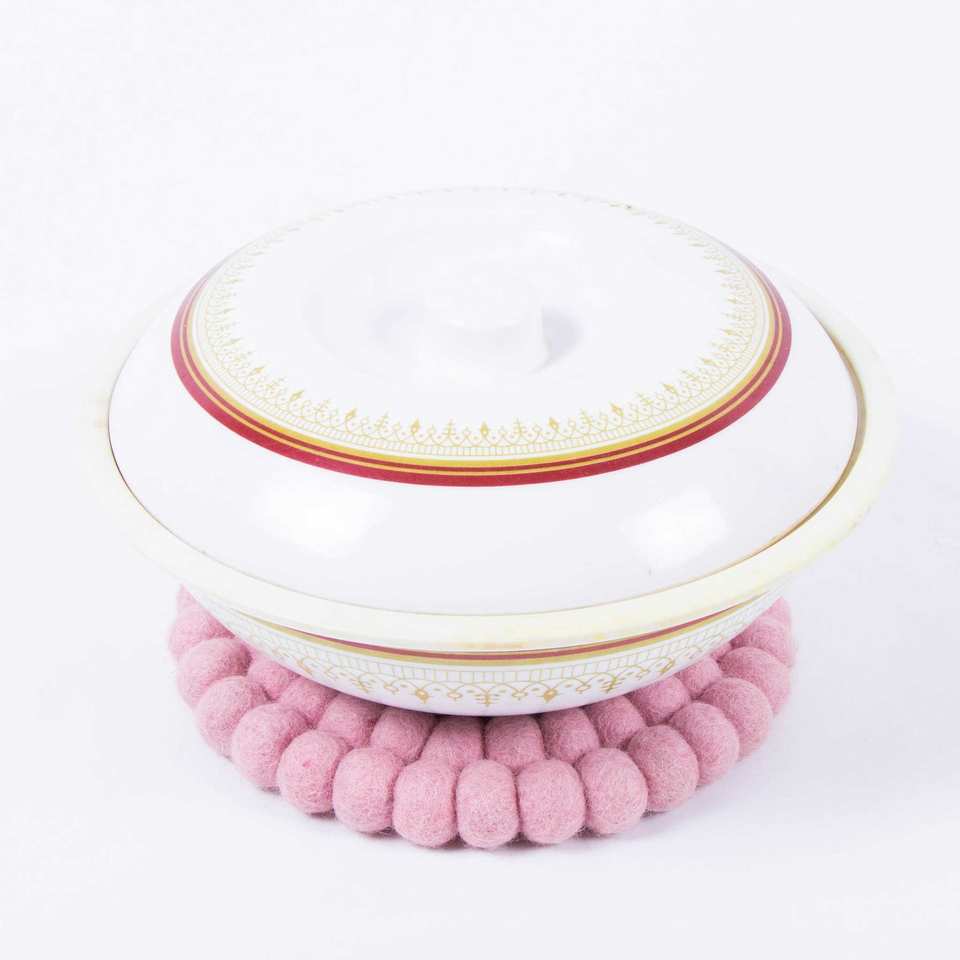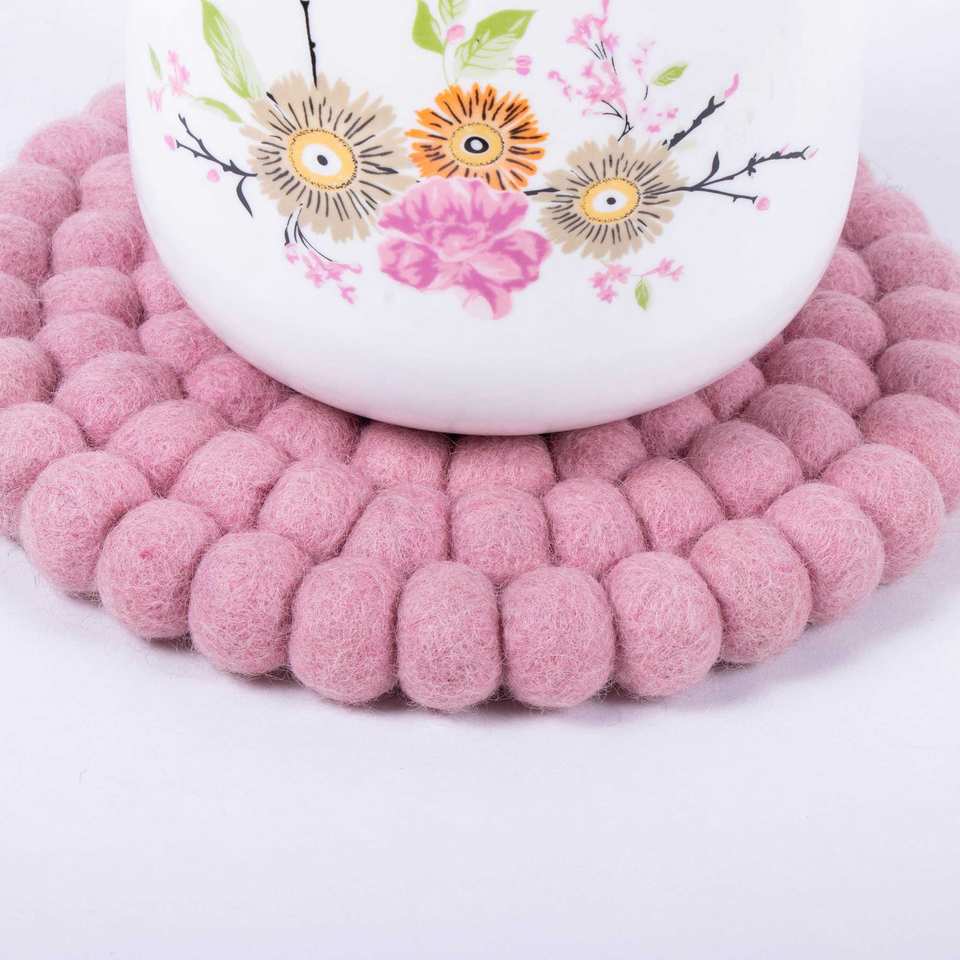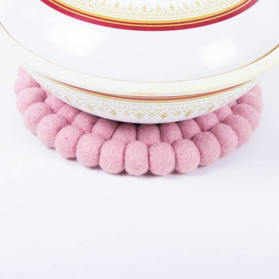 Feltandwool Pink Round Felt Trivet 4-Piece Set 1kg Elegant Mats & Pads for Tabletop Protection