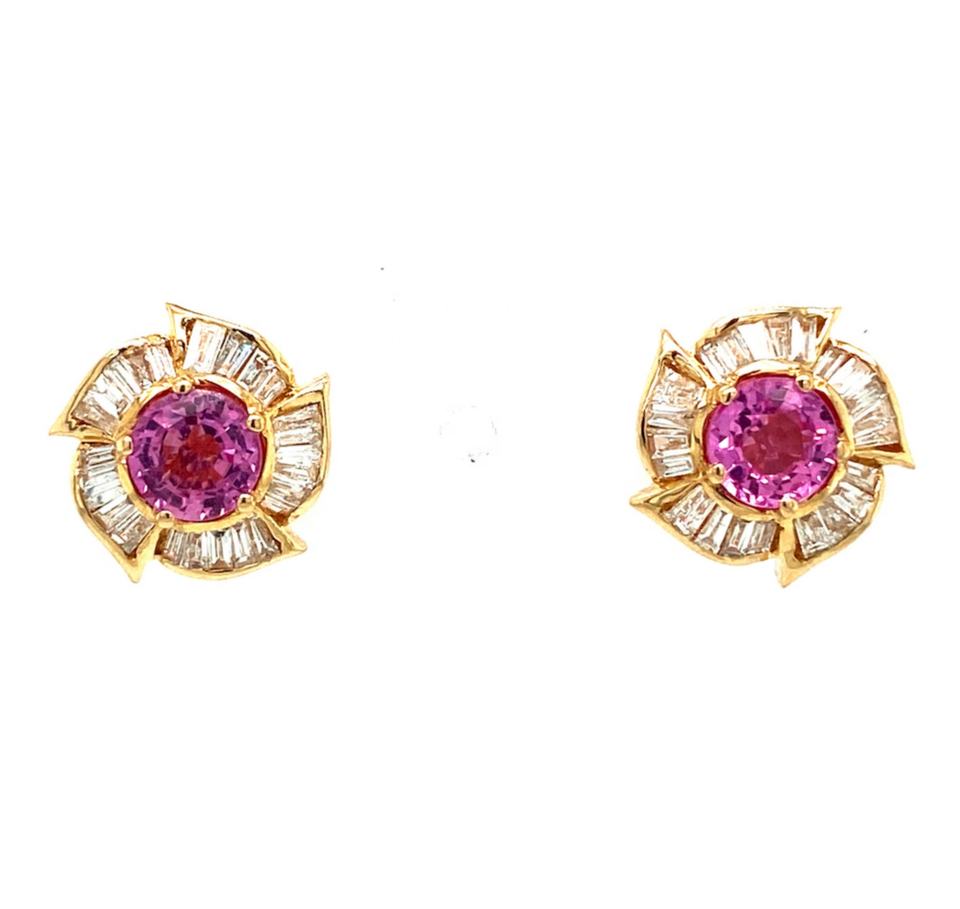 Pink Sapphire Diamonds Earrings in 14K Yellow Gold for Women Precious Gemstones Wedding Jewelry Customized Handmade Jewelry Gift