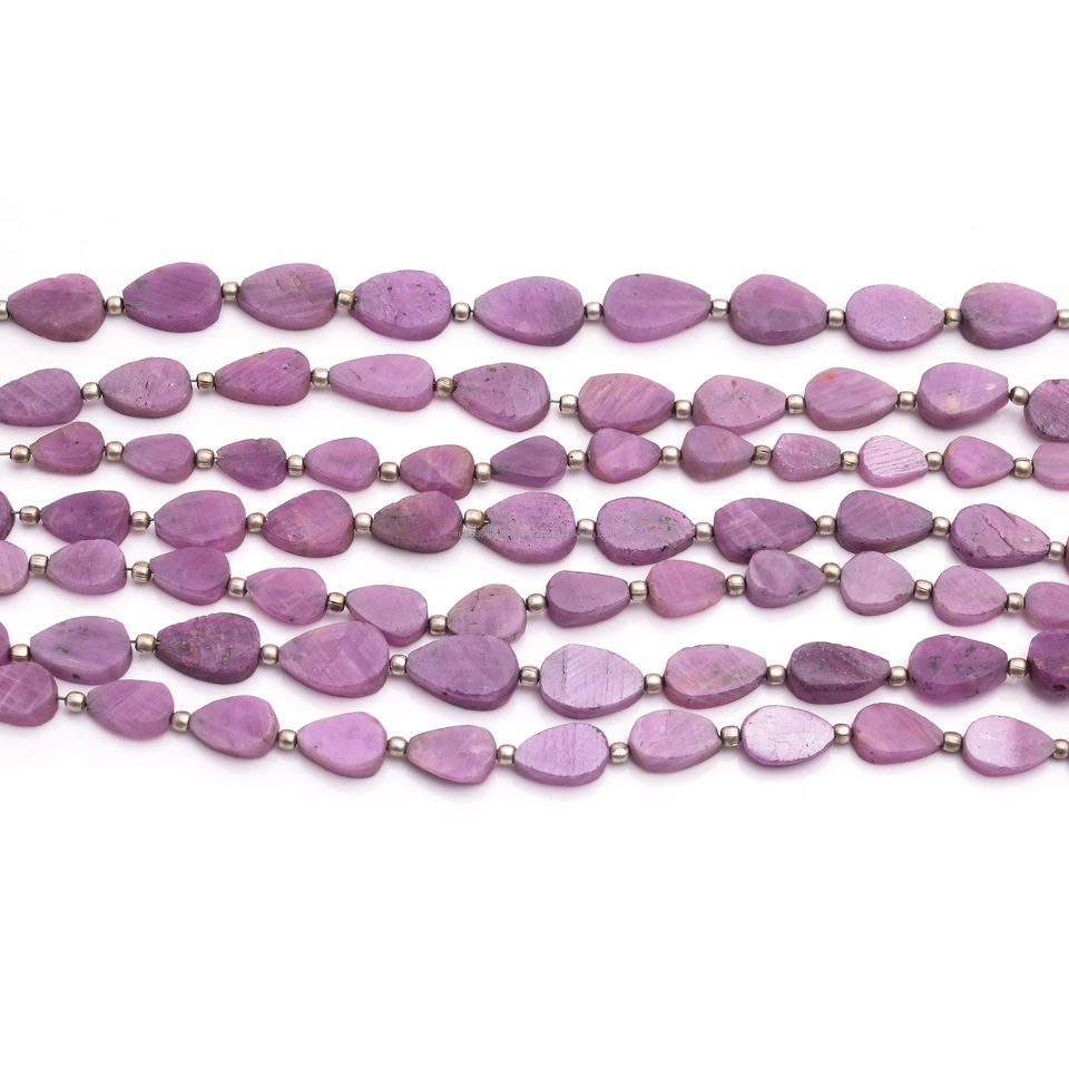 Pink Sapphire Smooth Flat Pear Shape 5x7 to 8x12.5 mm Beautiful Gemstone Beads Strand For Making Jewelry Bracelet Necklace