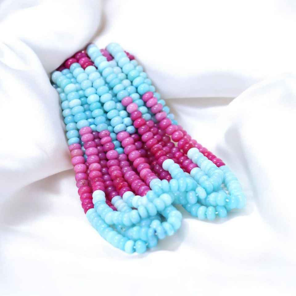 Beads Colour:Pink Sky Blue Shade Opal Smooth Rondelle