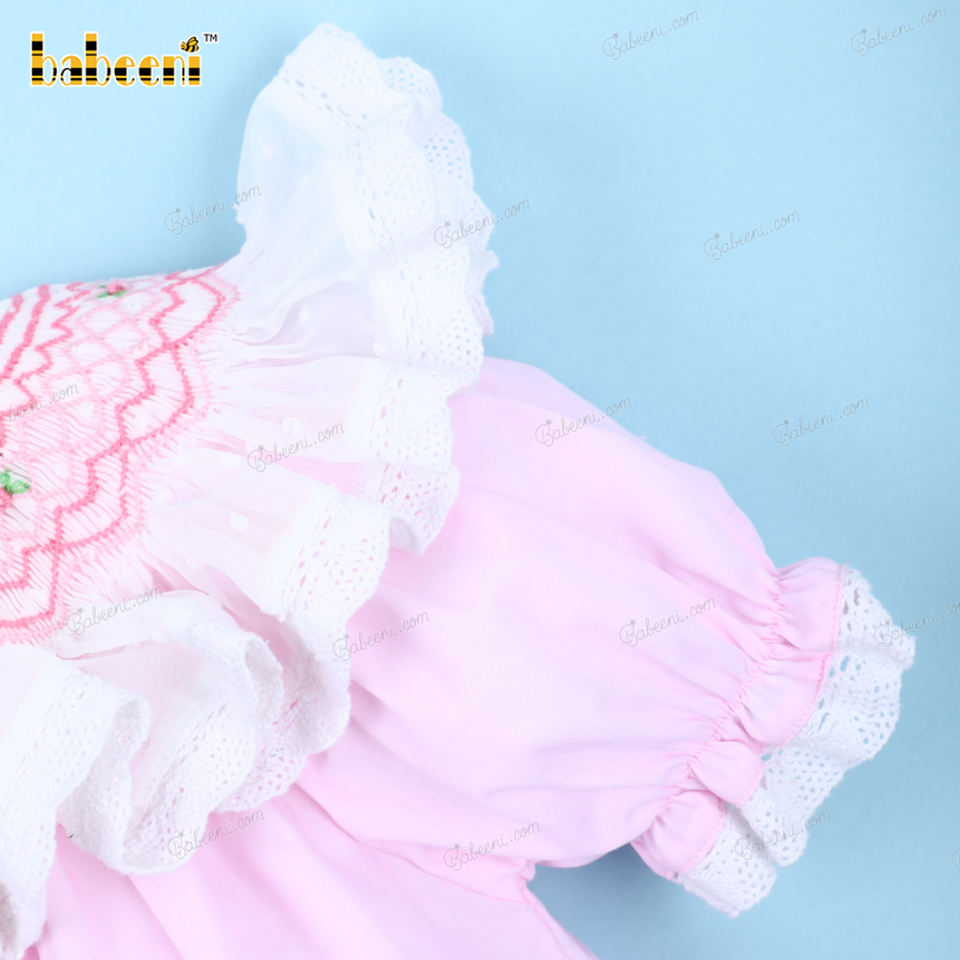 Wholesale Customized OEM ODM Hand Smocked Pink Smocked Bishop Dress 100% Cotton Geometric Pattern Chiffon Fabric for