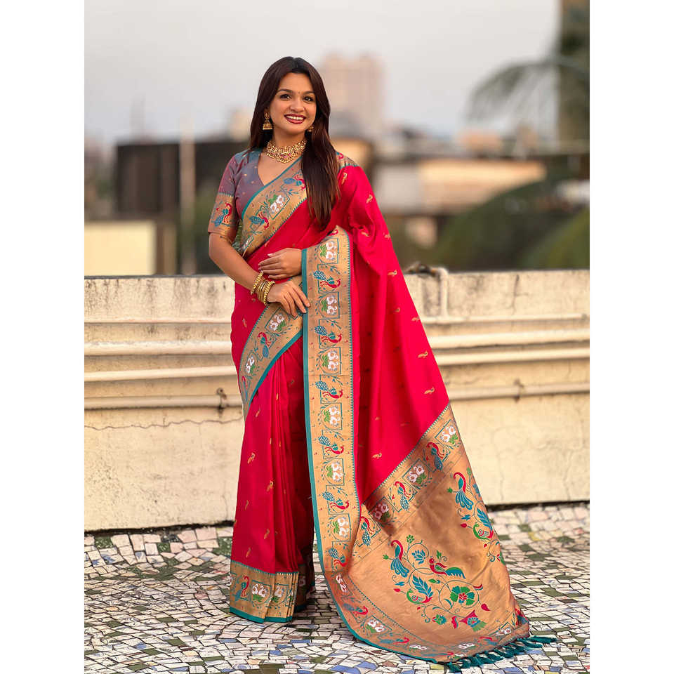 Pink Soft Silk Swan Rajhans Paithani Saree Elegant Evening Dresses