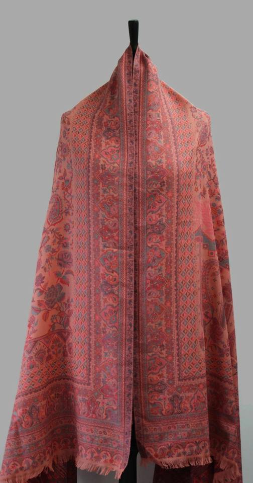 Pink Solid Velvet Polyester Vintage Style Shawl with Floral Embroidered Borders and Tassels Elegant Winter Wrap