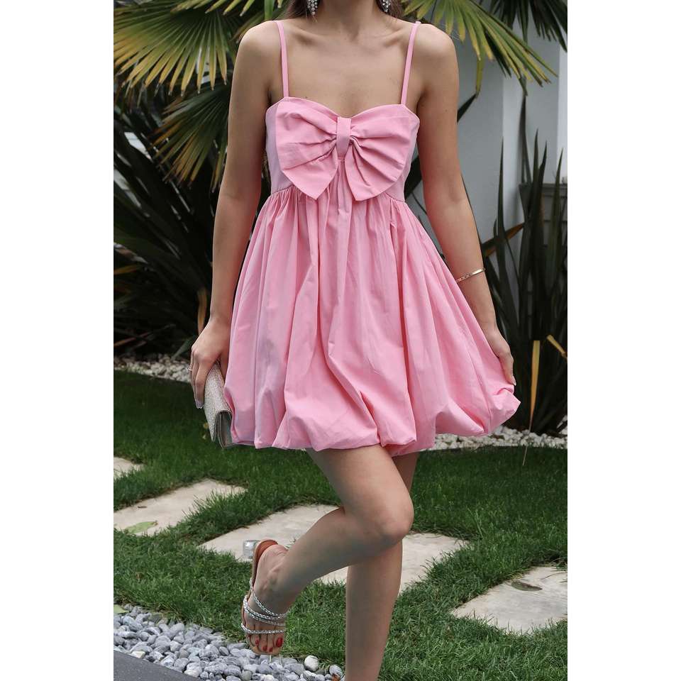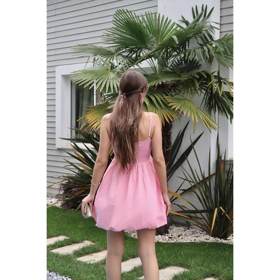 Pink Spaghetti Strap A-Line Dress Elastic Waist Woven Fabric Party Casual Dress