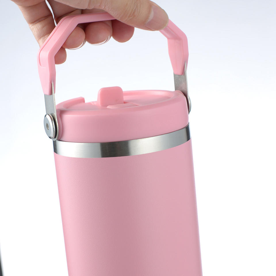 Pink Stainless Steel Insulated Tumbler 30oz With Handle And Lid For Travel Use