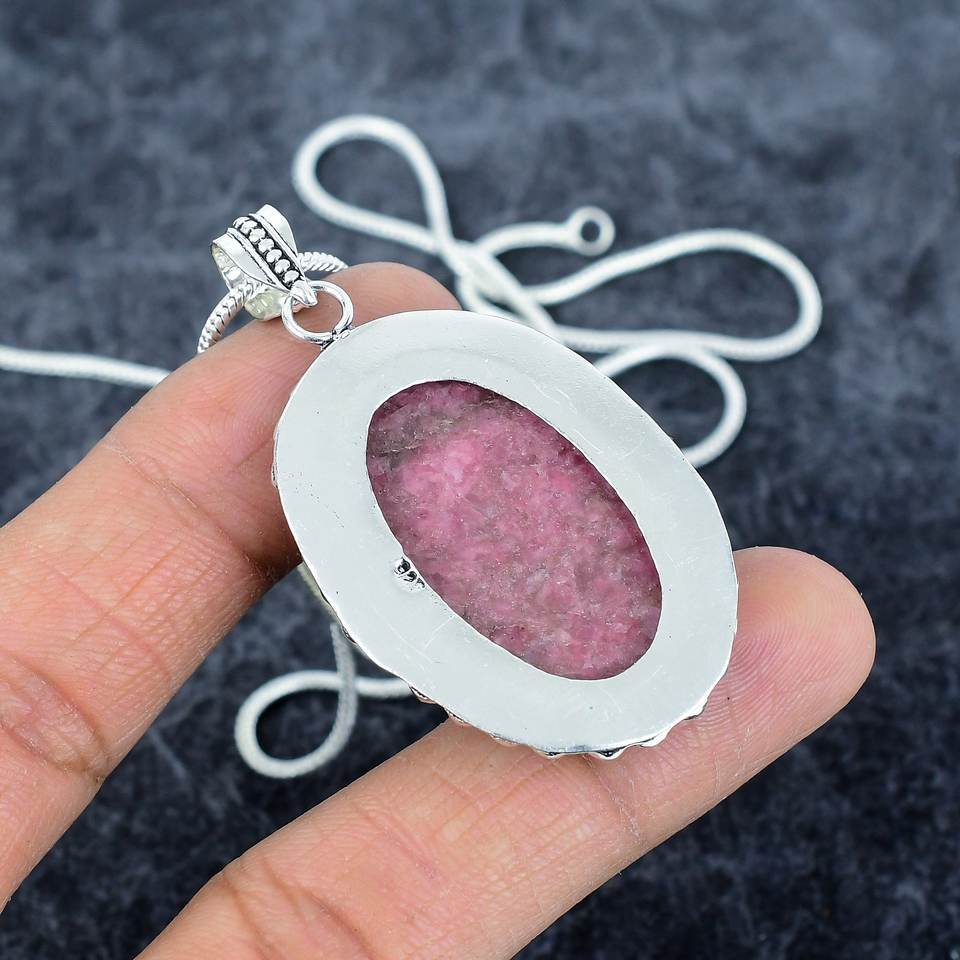 Pink Thulite 925 Sterling Silver Oval Gemstone Fine Pendant Necklaces Chain Necklace for Men Women Anniversary Pendant Necklaces