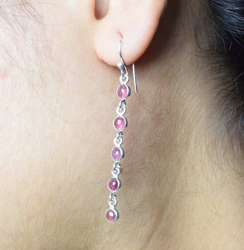 Pink Tourmaline Drop Earrings 925 Sterling Silver Long Hook October Birthstone Gift for Christmas Five-Stone