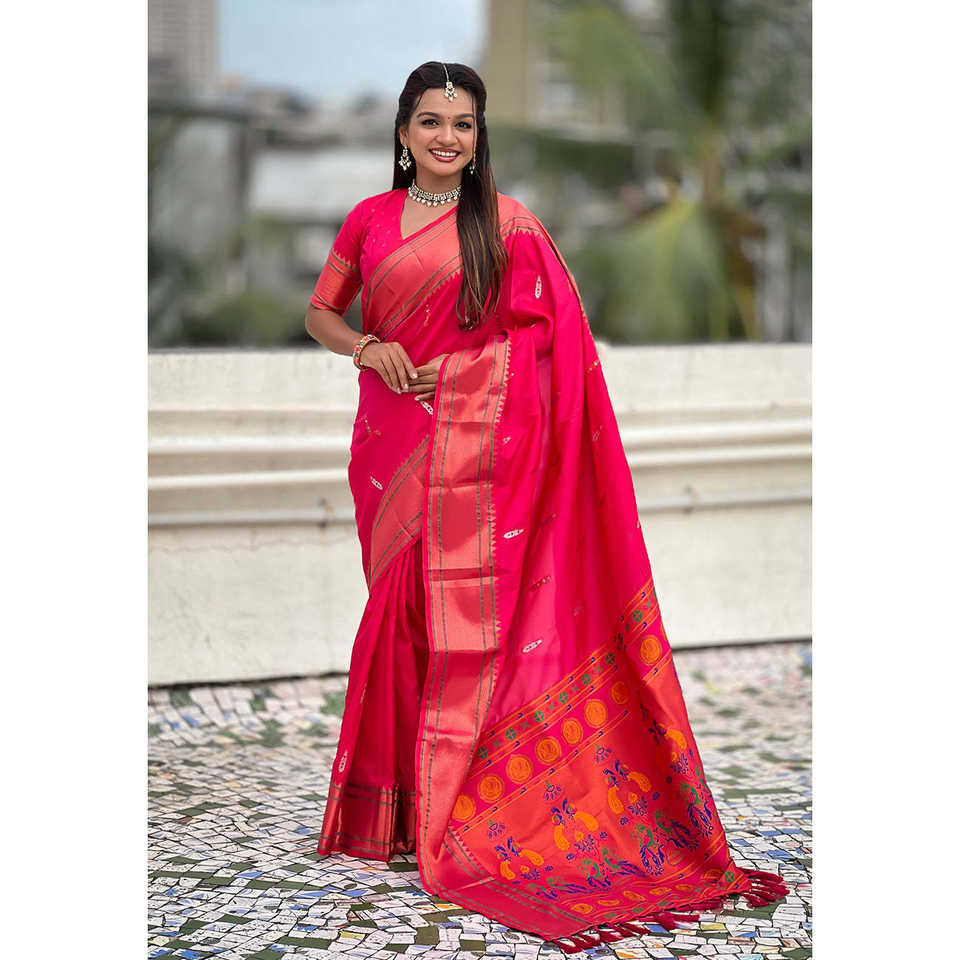 Pink Traditional Paithani Silk Saree Dual Zari Woven Yeola Indian & Pakistani Clothing