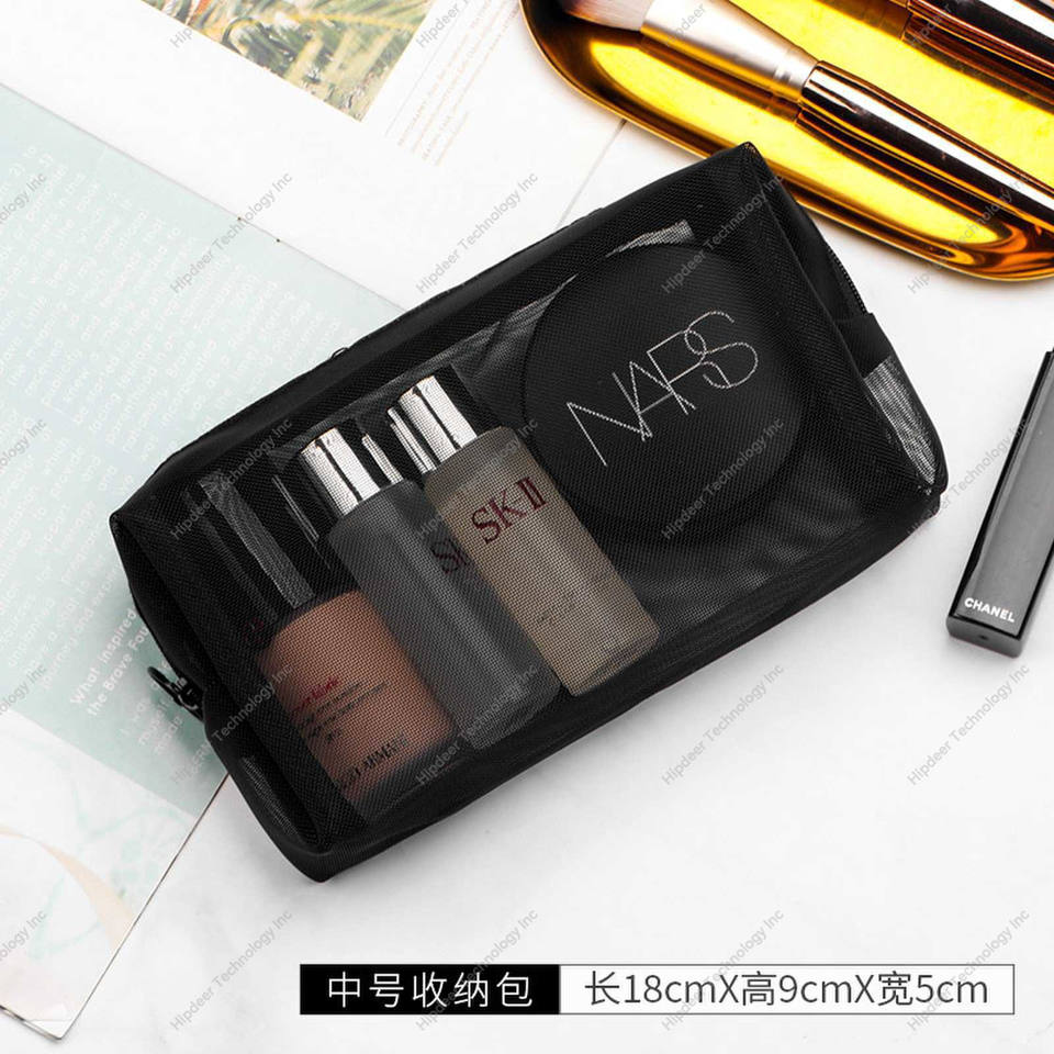 Pink Transparent Nylon Mesh Toiletry Bag Custom Logo Travel Makeup Cosmetic Bag Women Makeup Beauty Zipper Bag