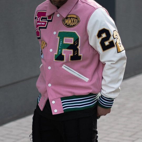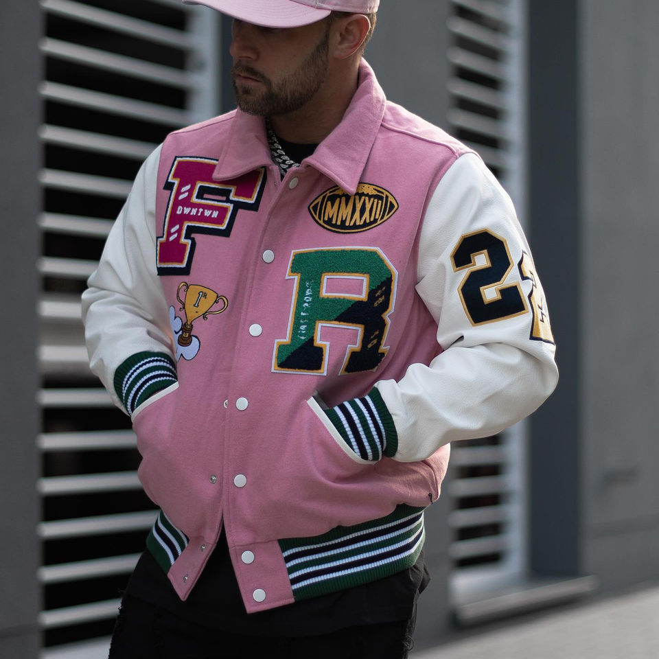 Pink Varsity Mens Jackets Custom Embroidery Streetwear Letterman Baseball Jacket for Men Varsity Jacket Chicago Style