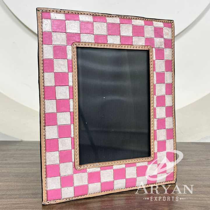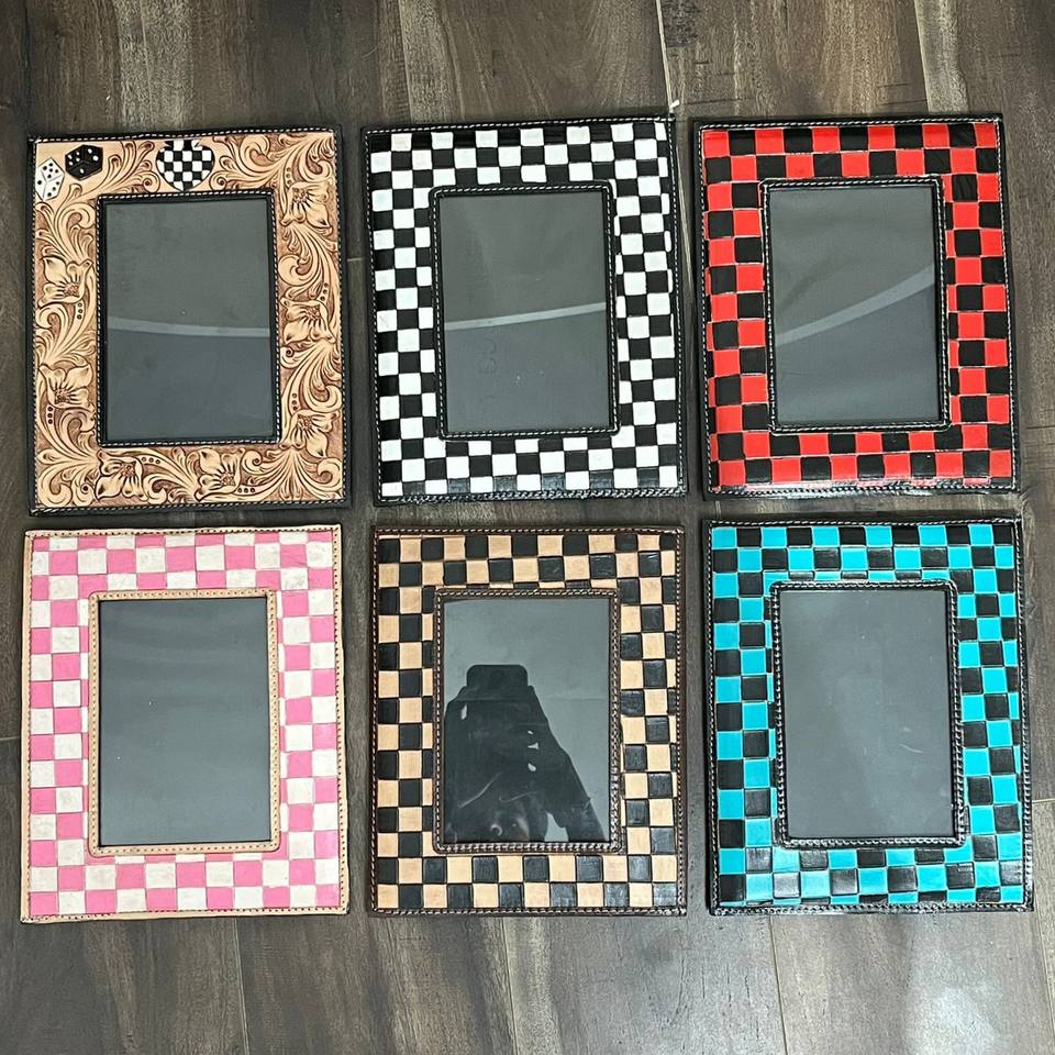 Product Name:Hand Tooled Checkered Leather Picture Photo Frame