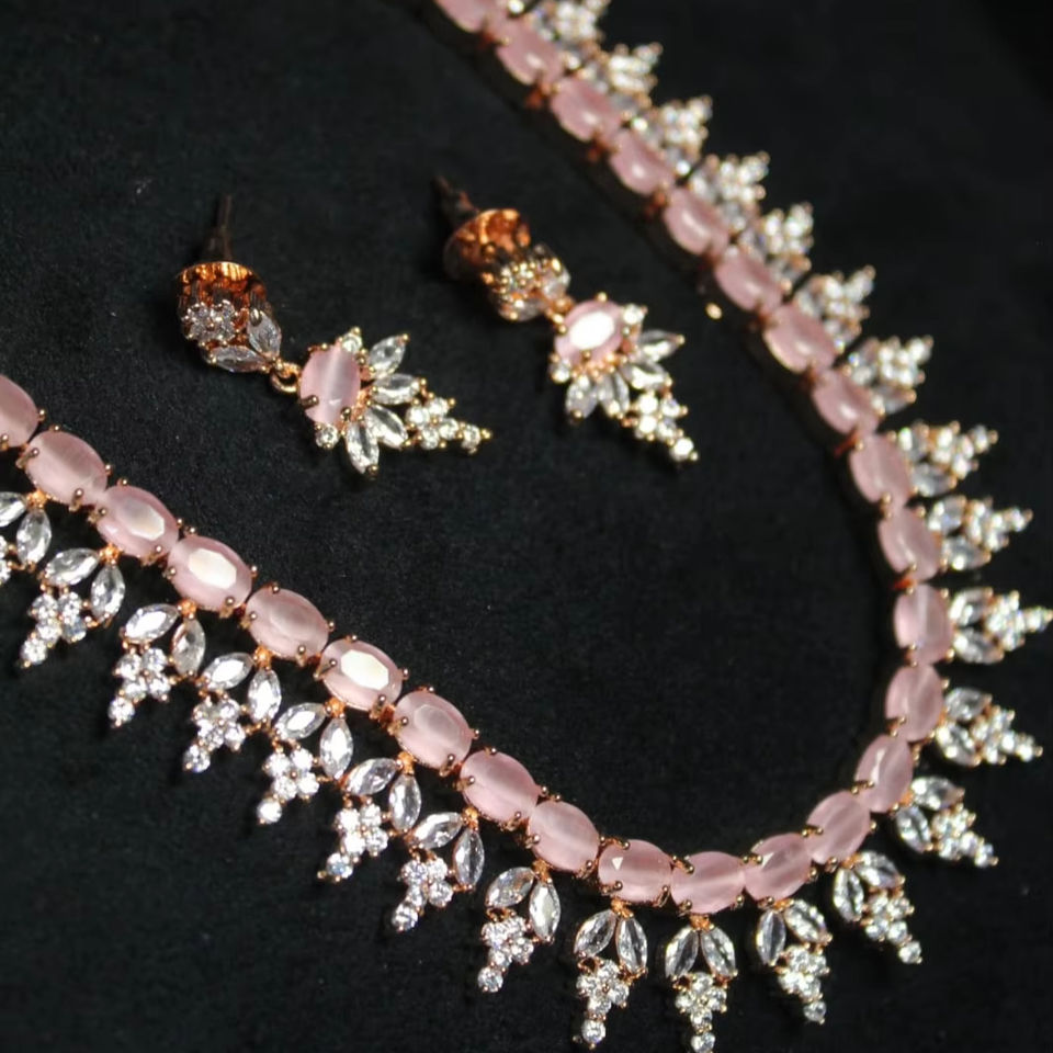 Pink & White Stylish with Brass Necklace with Silver AD CZ and Pearl for Brides Weddings Supplier of Bulk Products