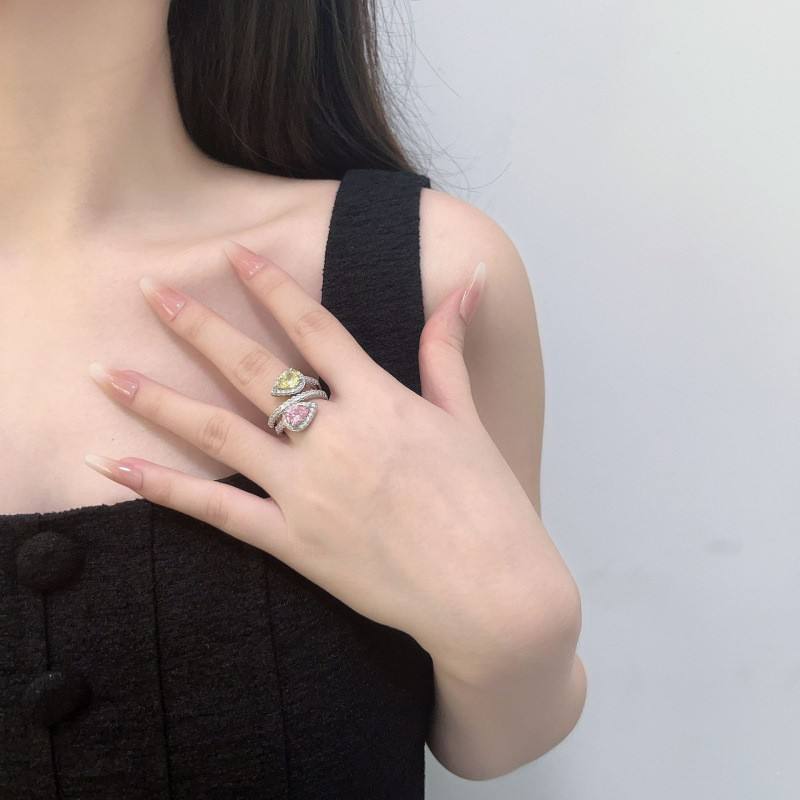 Pink and Green Brass Zircon Silver Plated Trendy Romantic Women's Rings Sweet Engagement Wedding Gift Jewelry