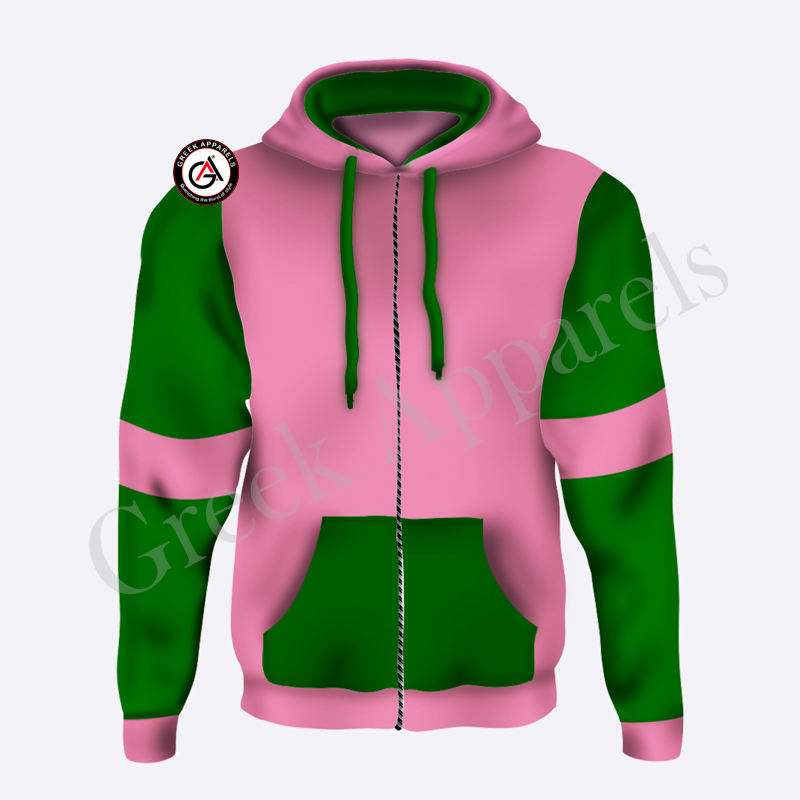 Pink and Green Sorority Embroidery Women Fleece Hoodie | Pink Sorority Sublimated Ladies Custom Style Jogging Shirt