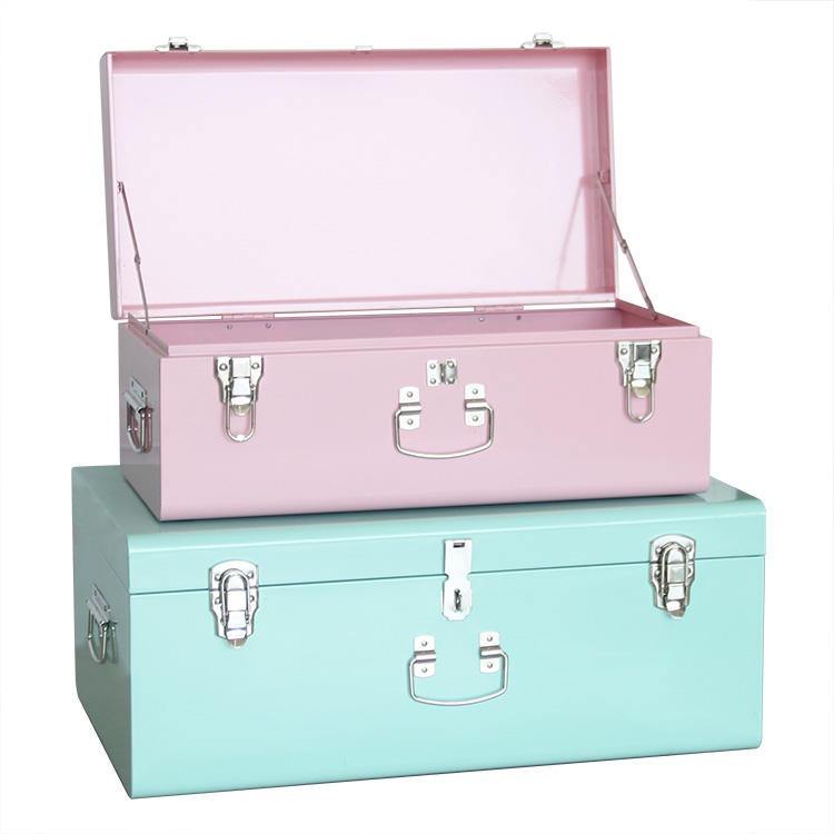 Pink and Light Blue Metal Trunking Storage Trunk Metallic with Silver Lock Accessories