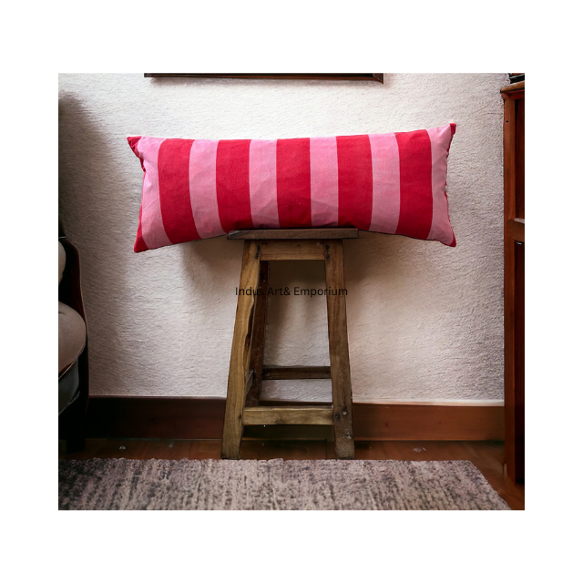 Pink and Red Stripe Cotton Pillow Cover Lumbar Block Printed Decorative Pillow Case Shams Euro Sham Pillow case