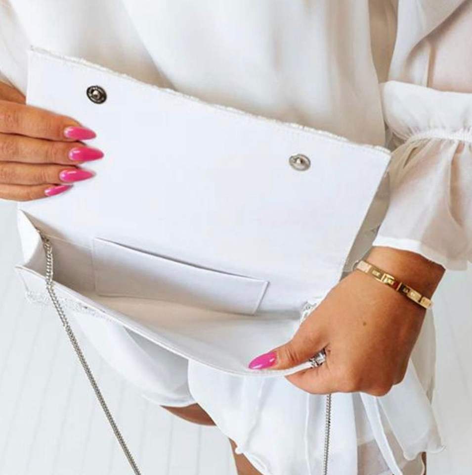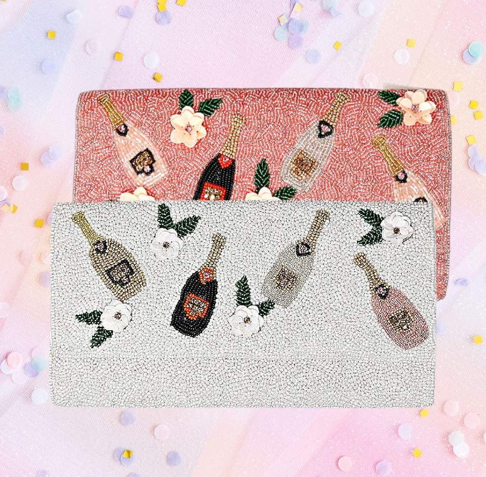Pink and White Champagne Bottle Bridal Beaded Crossbody Clutch