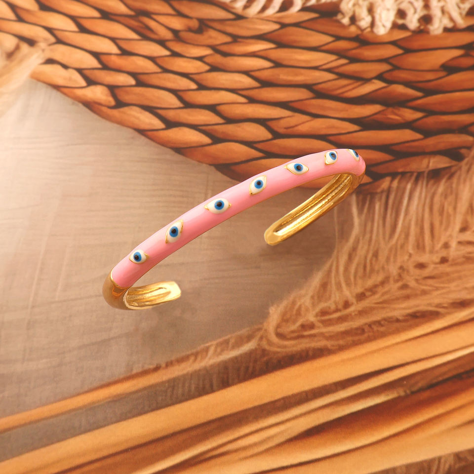 Pink enamel bracelet gold plating thin eye designer adjustable cuff bracelet for everyday wear fashion jewelry