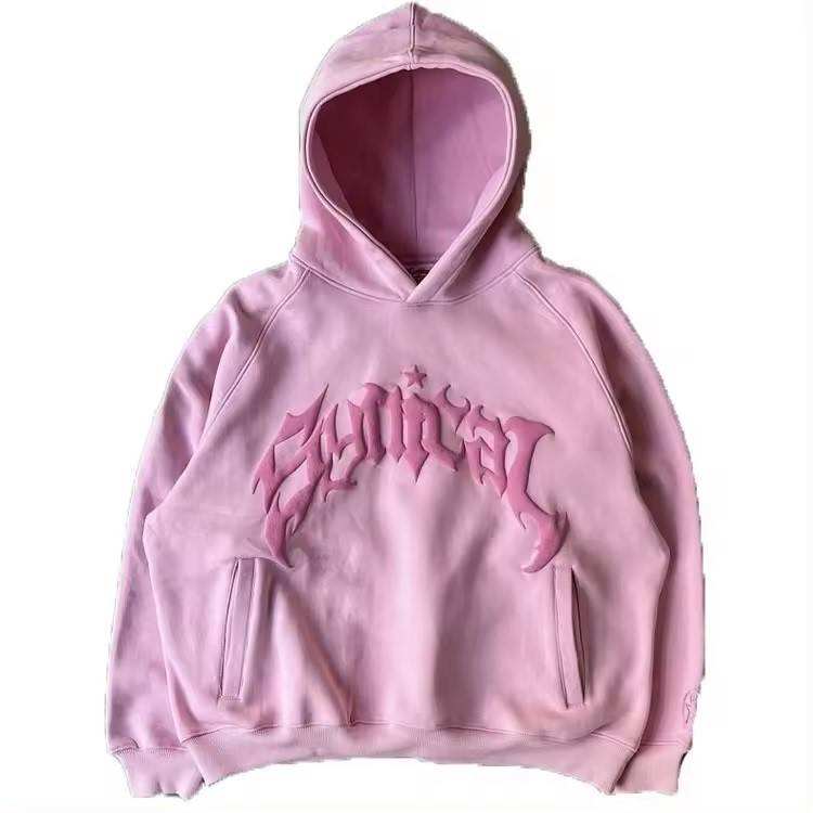 Pink gothic style hoodie for women and men soft warm oversized pullover stylish graphic embossed design trend casual winter wear