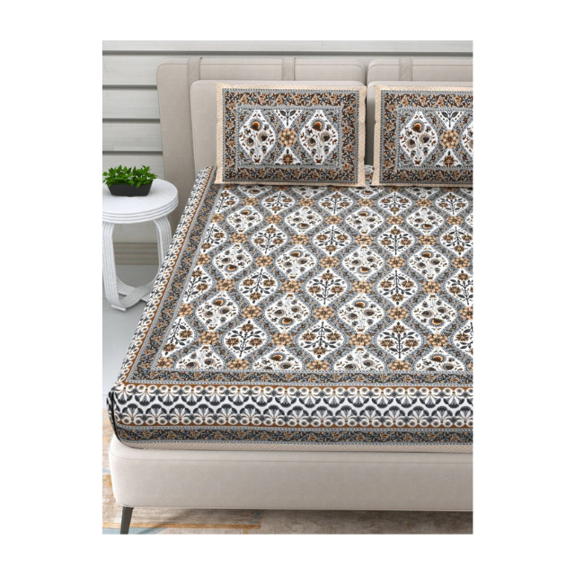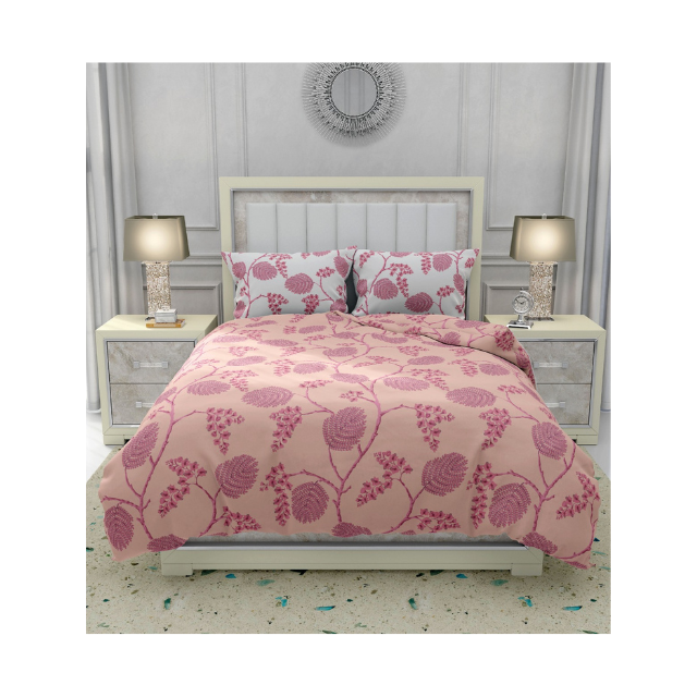 Pinkish Block Pigment Print 100% Cotton Embroidered Queen Linen With AZO Free Dye Use And Ethical Indian Production Process