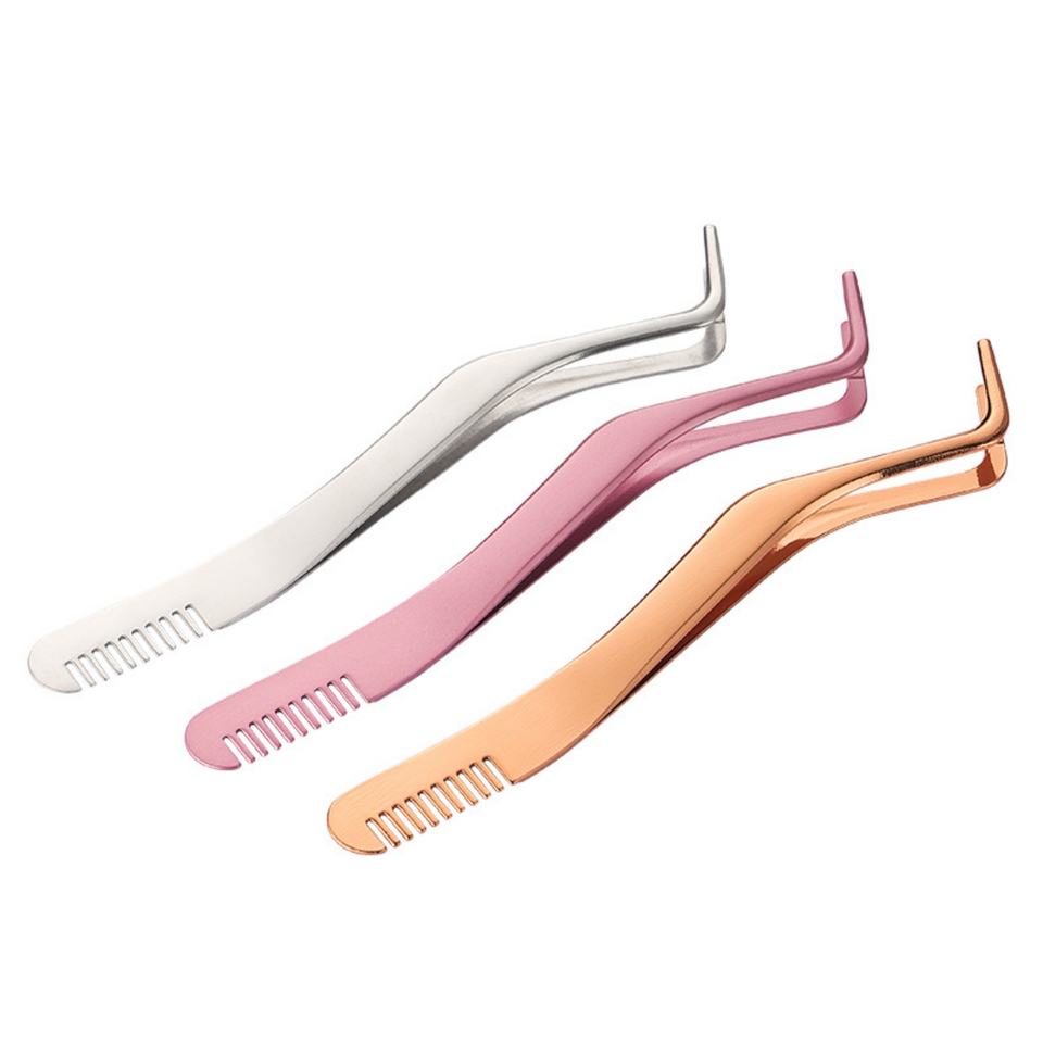 Pinky leem Wholesale Lash Extension Tweezers Private Label Stainless Steel Curved Eyelash Applicator Tweezers Custom Logo