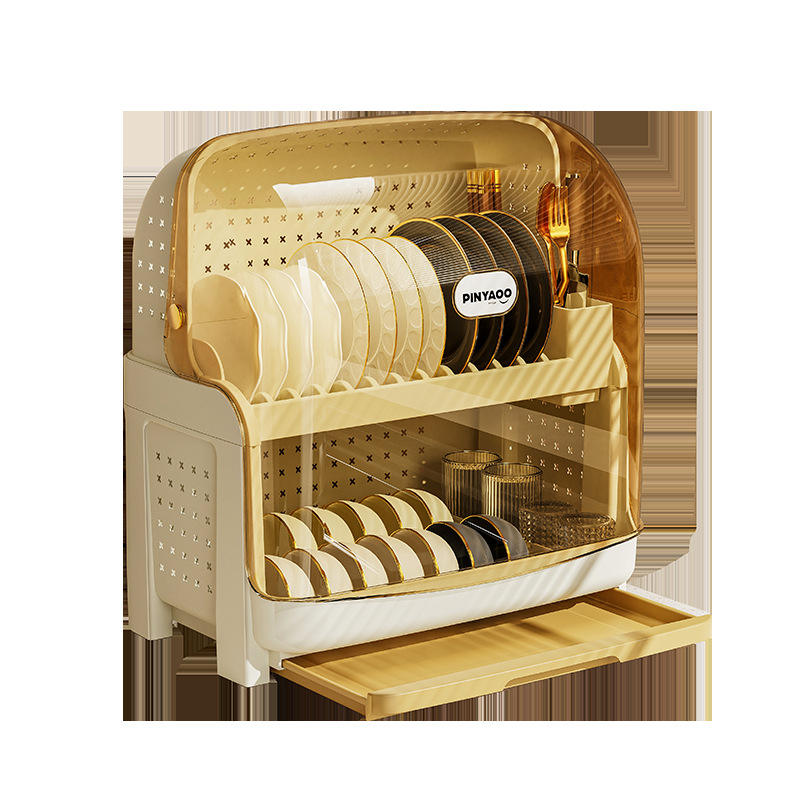 Pinyaoo Dish Drainer Rack Large Capacity Flip Top Countertop Storage With Drawer For Kitchen Tableware