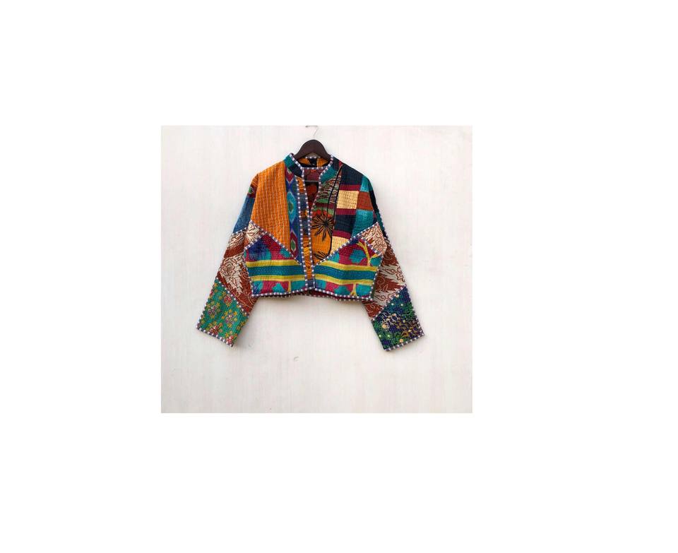 Piping Handmade short jacket,Kantha short jacket coat,Hippie coat,Handmade Bohemian Style Eco Friendly, One of a Kind