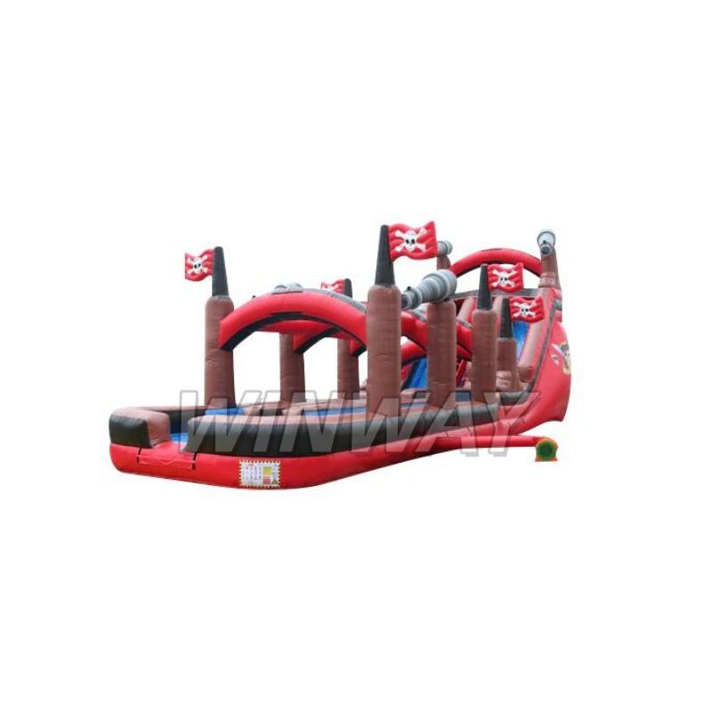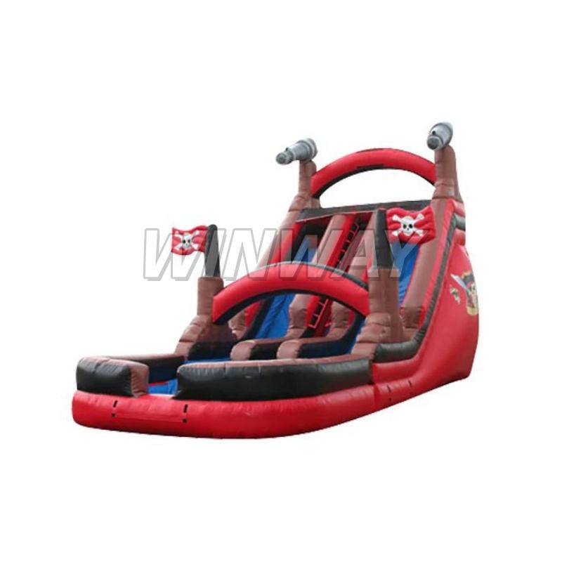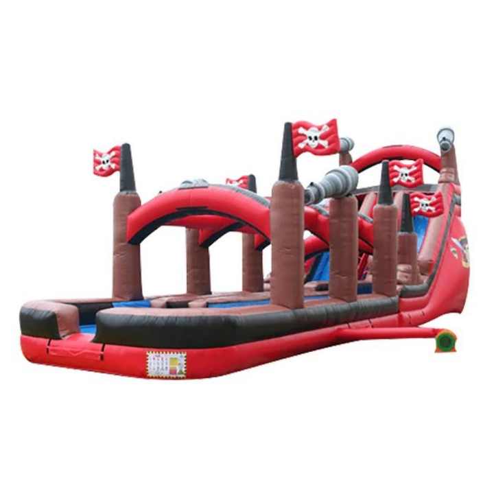 Pirate Ship Themed Inflatable Water Slide with Dual Slides & Pirate Details