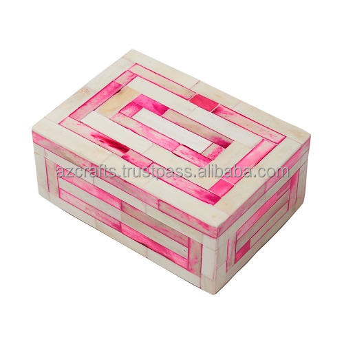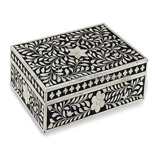 Pisces Marrakech Grid Elegance Bone Inlay Wood Trinket Box Resin Jewelry Case Storage with Gift Packing Carton Included
