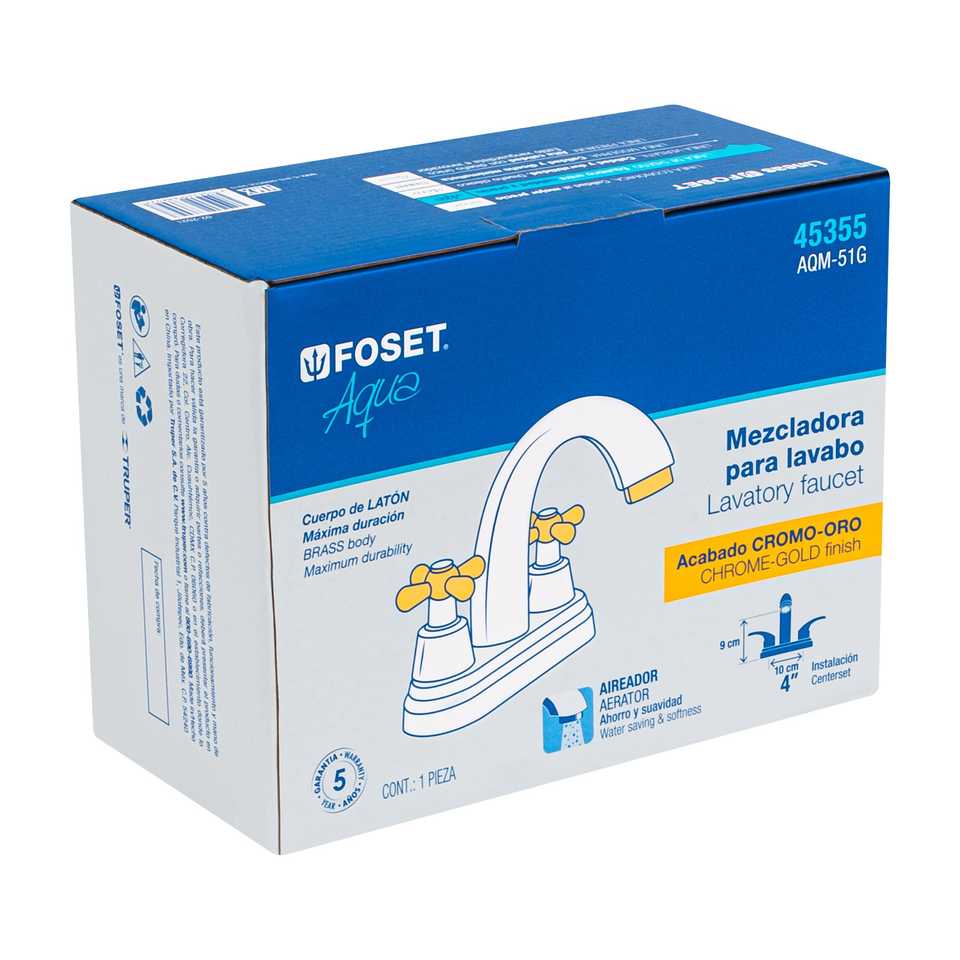 Pit AQM-51G Chrome-Gold Mixer 4' Basin/Vanity Faucet with Dual Handle Solid Brass Single-Hole Mount Curved Nose Crossbar