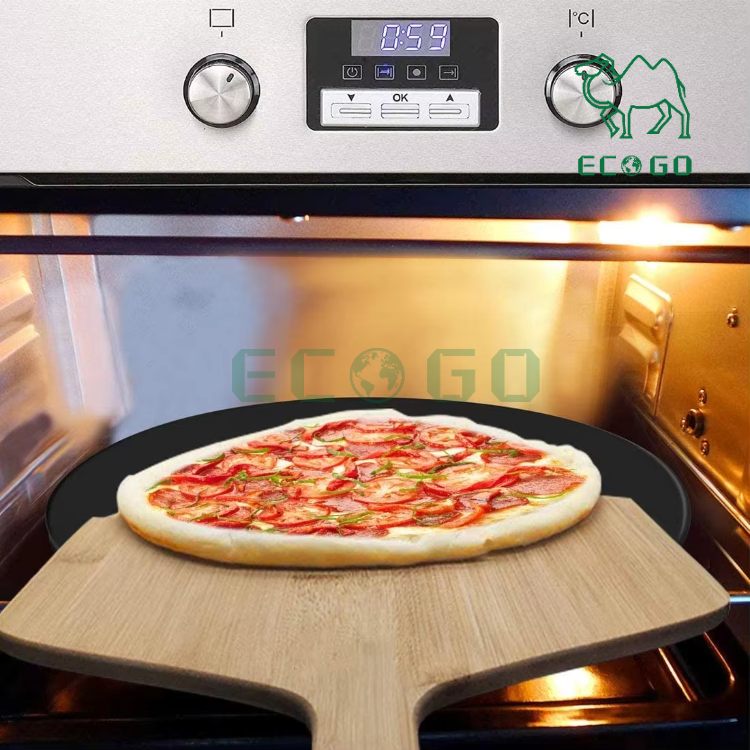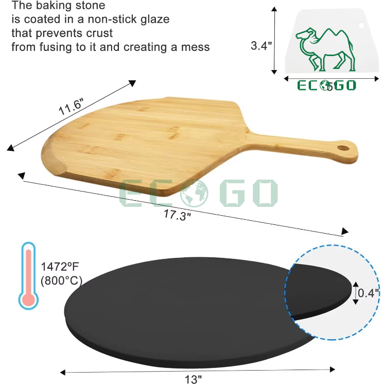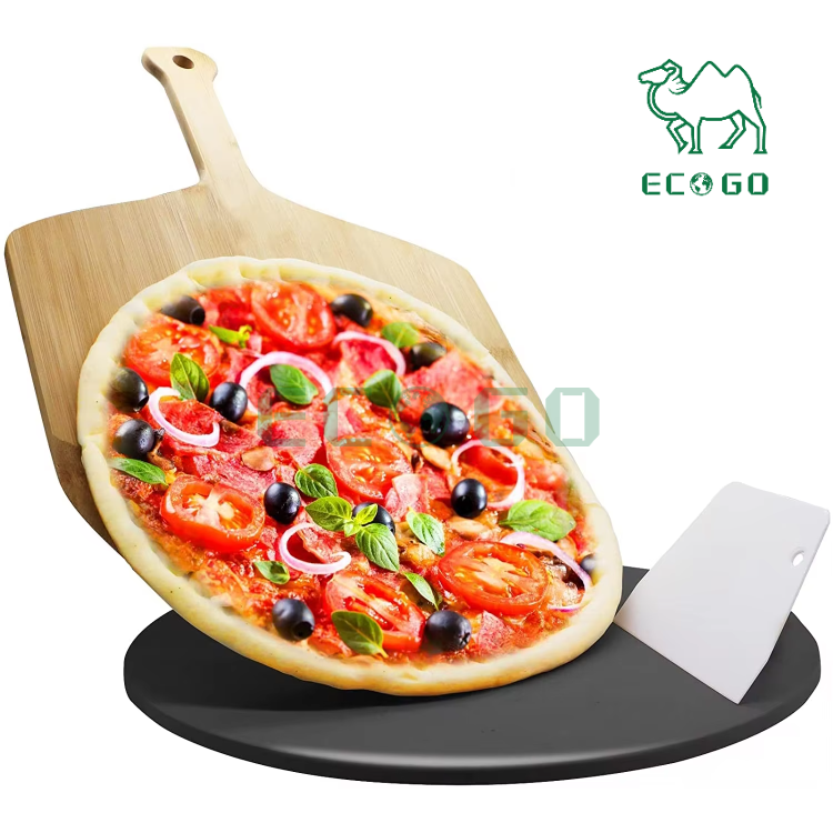 Pizza Peel Paddle Bamboo Wooden Pizza Peel Set With Black Pizza Stone for Kitchen Oven and Grill