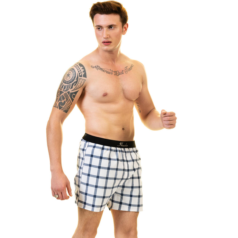 Plaid Boxer Shorts with Inside Fashion Waistband Multicolor Boxer Men's Woven Cotton Long Adults Print Pattern for Men Knitted
