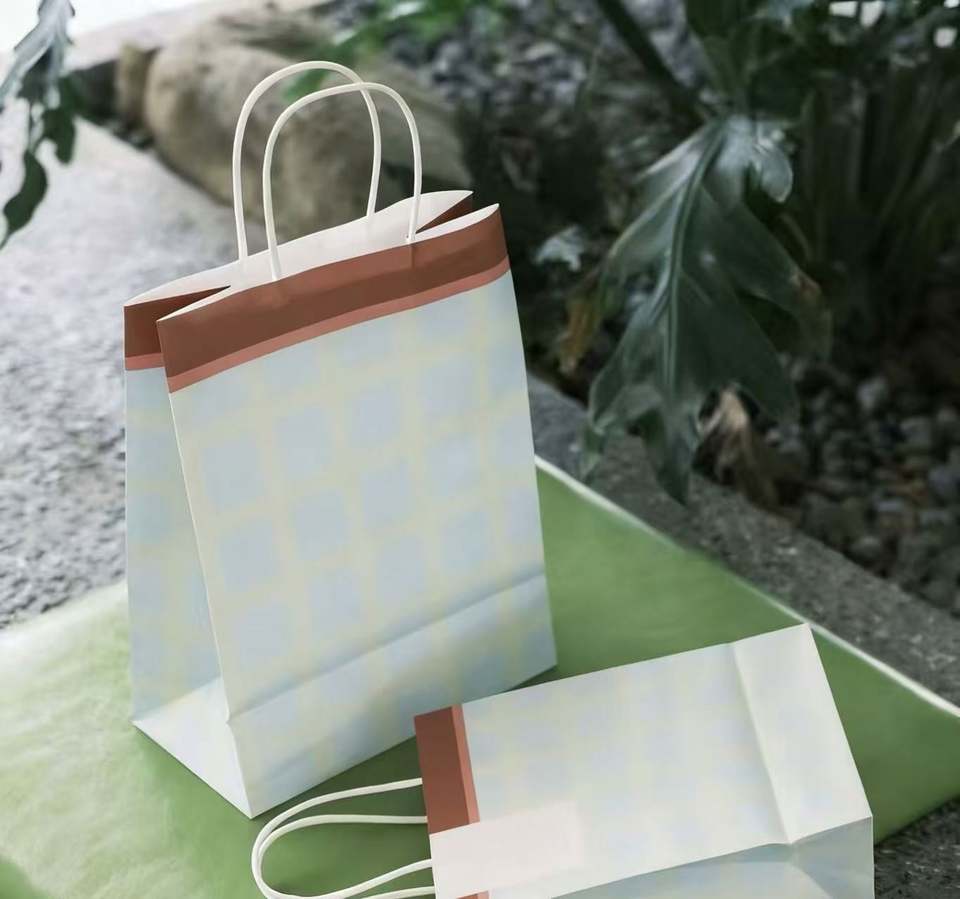 Plaid Leather Tote Bags Milk Tea Baking Bags Takeaways and Birthday Festive Gifts Paper Bags Spot