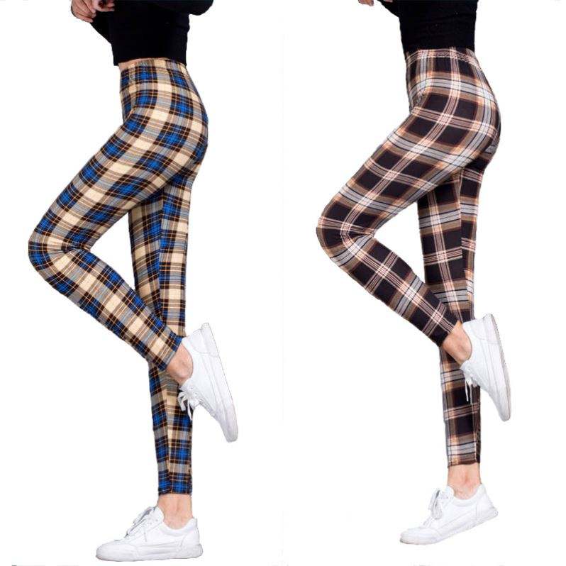 Plaid Leggings Women Sexy Pants Push up Leggings Fashion Fitness Leggins Gym Sporting Plus Size High Waist Trousers J0034