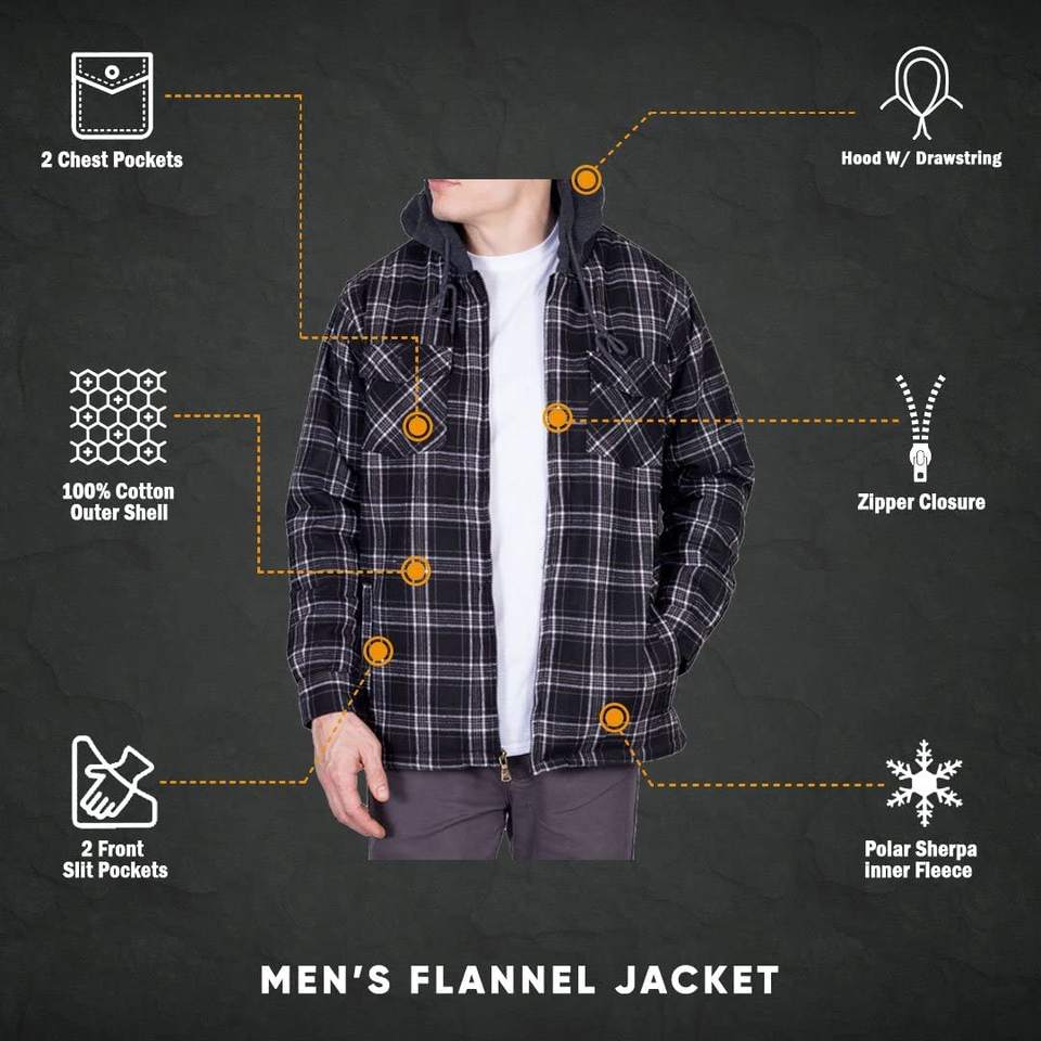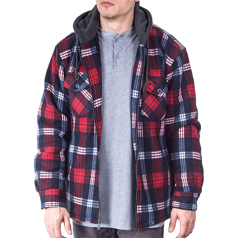 Plaid Quilted Lined Winter Coats Thick Hoodie Outwear Men Fleece Shirts Men's Flannel Shirt