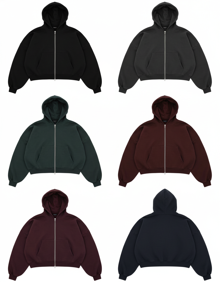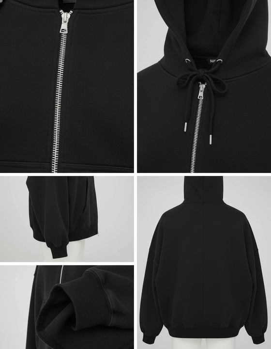 Plain Black Full Zip Hoodie for Men Women Thick Fleece Lined Loose Fit Casual Hooded Sweatshirt Outerwear