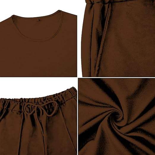 Plain Brown Men's Summer Slim Fit Gym Workout T-Shirt Shorts Breathable Cotton Spandex Streetwear Tracksuit Set Wholesale