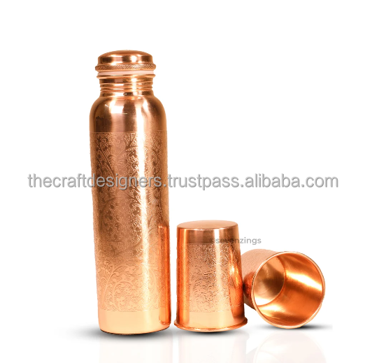 Plain Copper Water Bottle With Glass Set Adult and Kids Health Beneficial Drinkware Household and Picnic School Water Bottle