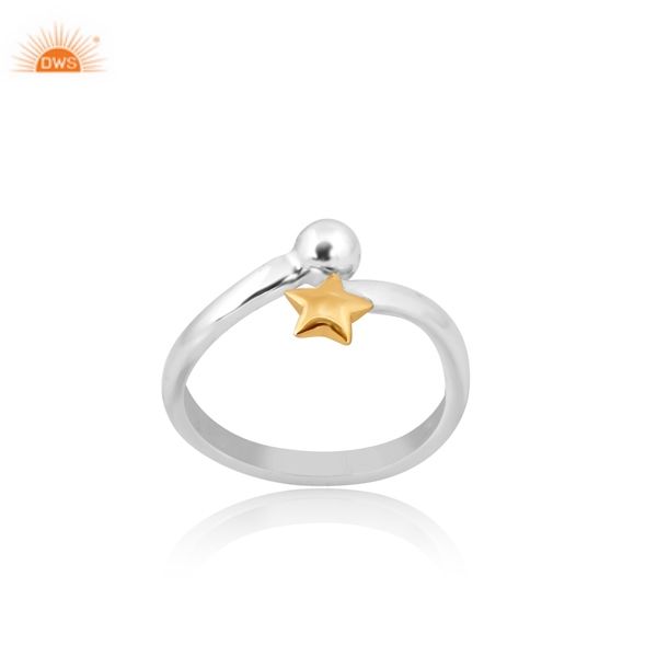 Plain Gold Star Adjustable Shank Ring With Double Tone 925 Sterling Silver Custom Jewellery Manufacturer