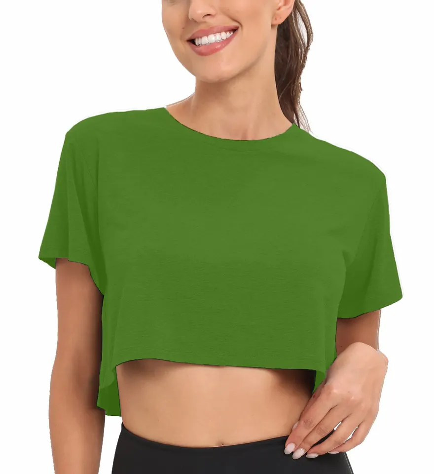 Plain Ladies Custom Printed Blank Cotton Color Crop Top Women Short Sleeves Crop Top T Shirts