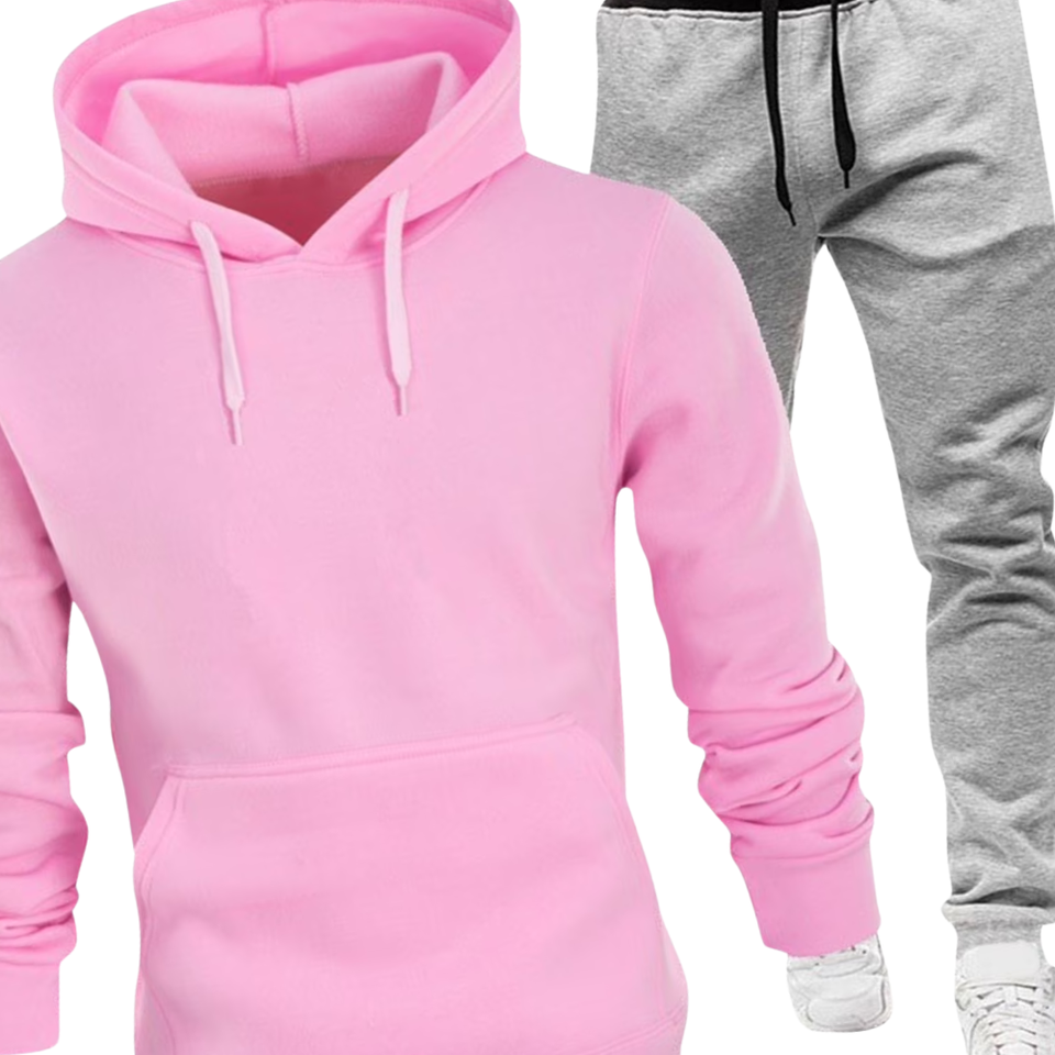 Plain Mens Fleece Tracksuit Hoodie And Jogger Sweatpants Set Winter Warm Casual Streetwear Fitness Workout Gym Running Suit