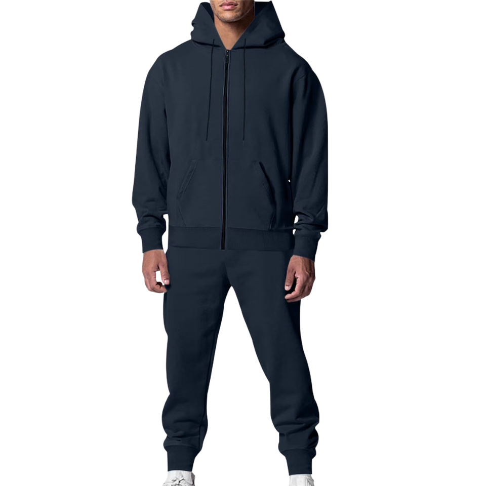Plain Navy Zipper Tracksuit Hoodie And Joggers Set For Men Women Unisex Winter Warm Casual Wear Soft Fleece Two Piece Oem Sales