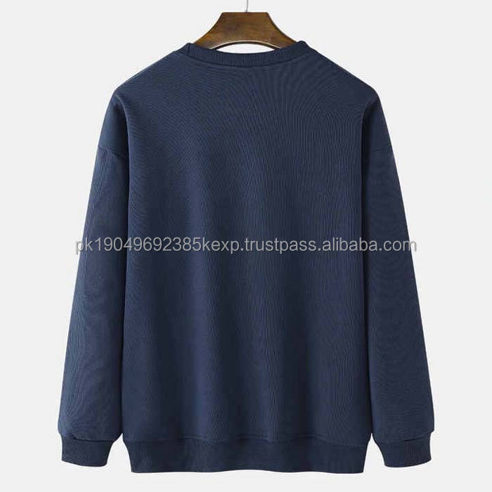 Plain Oversized Men Clothing Hoodies Sweatshirts Top Quality Navy Blue Color Long Sleeve 100% Cotton Fleece Basics Sweatshirt