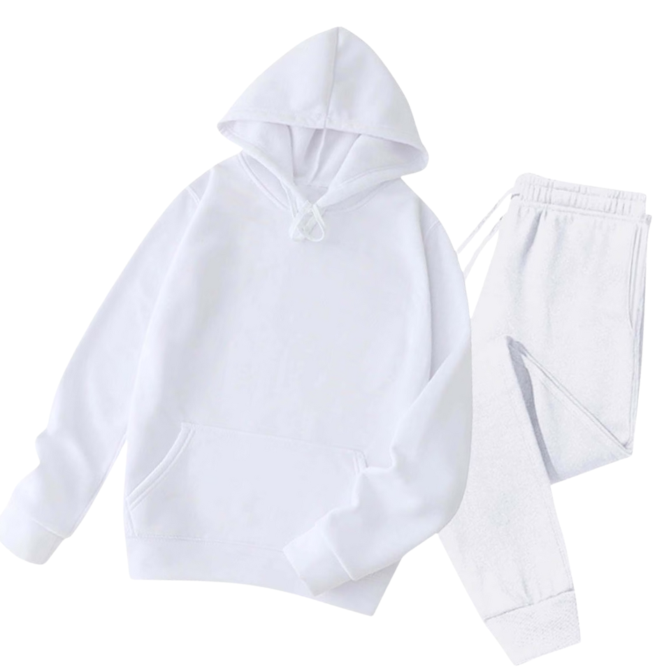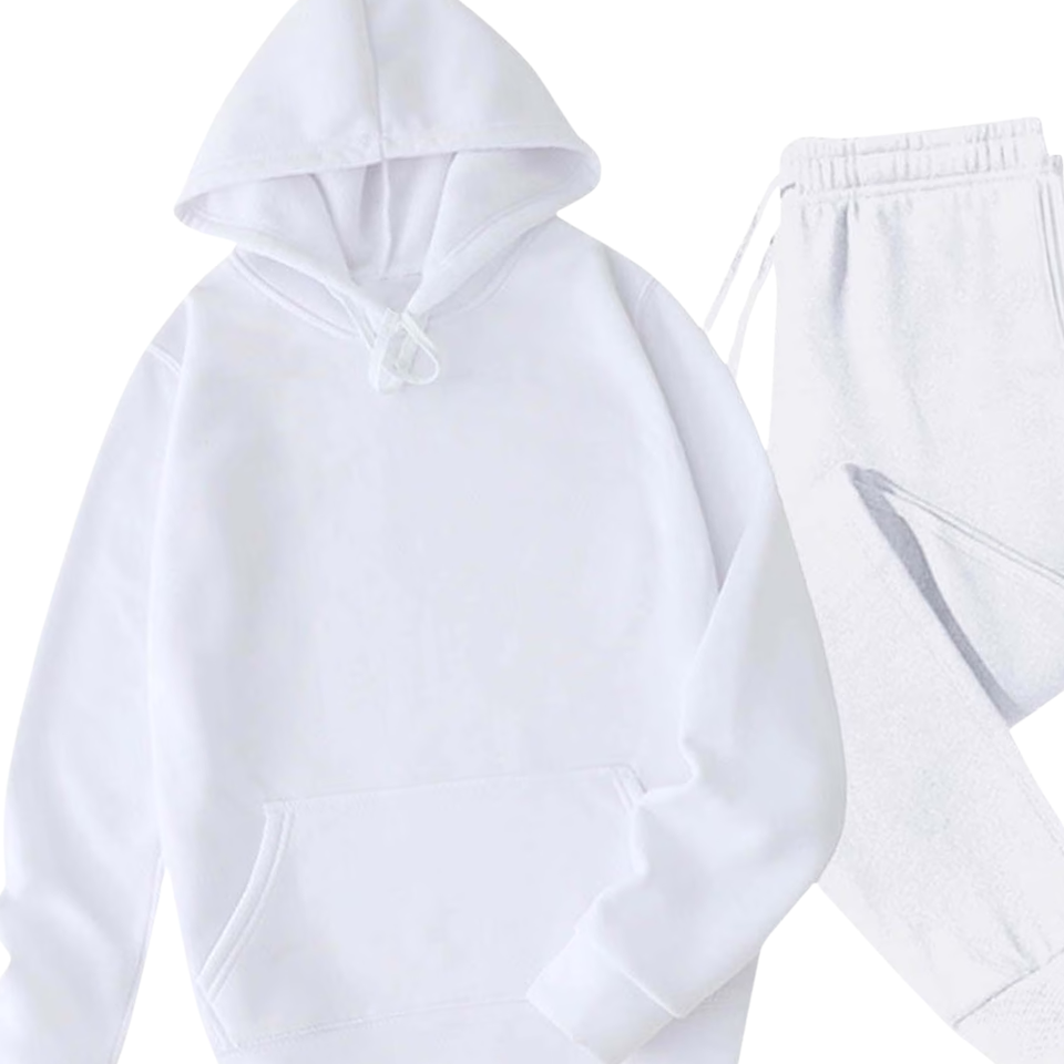 Plain White Hoodie And Jogger Tracksuit Men Fleece Two Piece Set Custom Logo Oem Streetwear Casual Gym Wear Wholesale Fashion