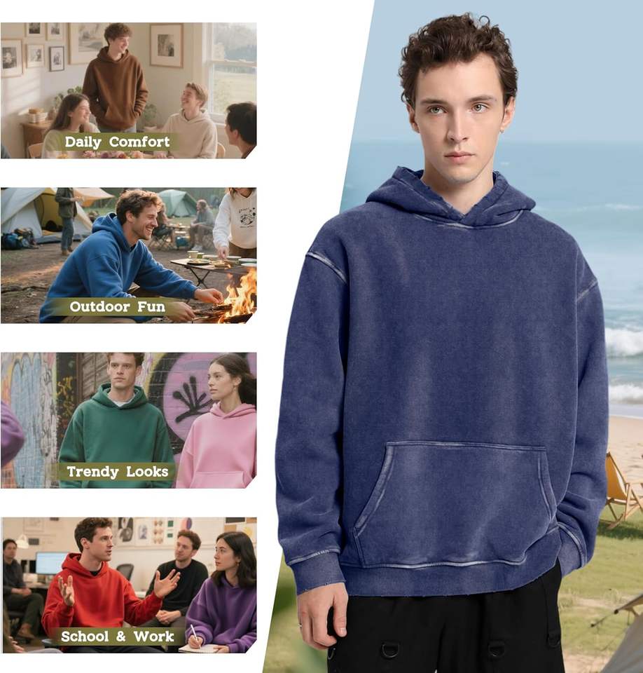 Men's 100% Cotton Pullover Sweatshirt Plain White Hoodie Minimalist Streetwear Soft Winter Wear Custom Options Dye Technique