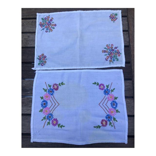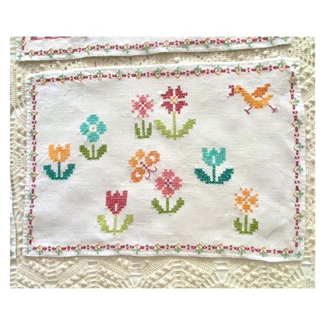 Plain White With Simple Embroidery Design Customized Indian Style Washable GOTS Certified Organic Cotton Linen Placemat for Home