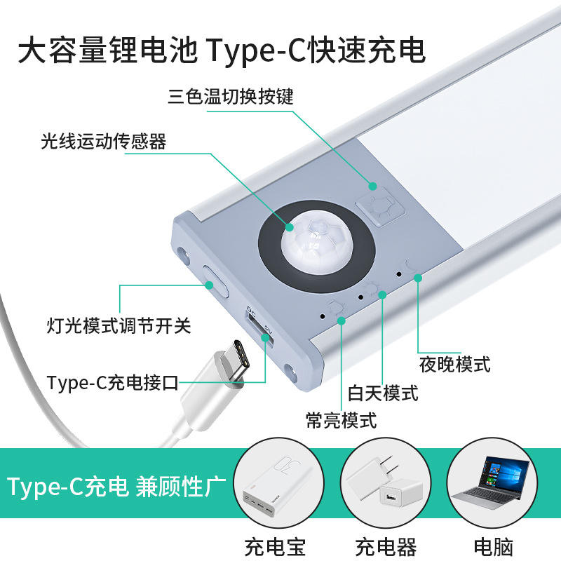 Kitchen Under Cabinet LED Light with Motion Sensor Wireless Rechargeable Modern Design Magnetic Installation 20cm/30cm/40cm/60cm